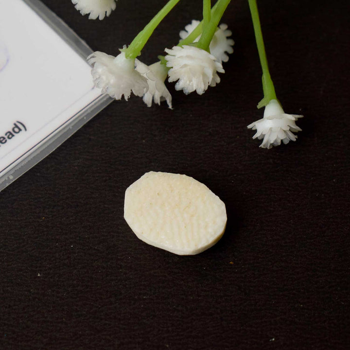 About Product: The Surya Mani, also known as Machh Mani or Fish Pearl, is a sacred gemstone associated with Planet Sun (Surya). With a brilliant white finish, this rare mani is revered in Vedic traditions for enhancing willpower, self-confidence, and spiritual enlightenment. It is often referred to as a divine gem formed naturally inside a rare species of aquatic life, making it an auspicious and spiritually potent artifact.