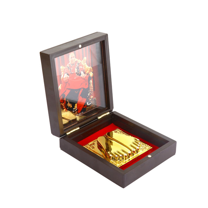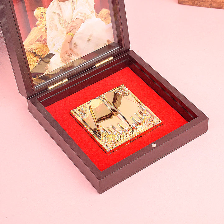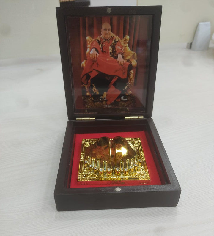 Guru Ji Wooden Gold Plated Sukrana Charan Paduka Prayer Box