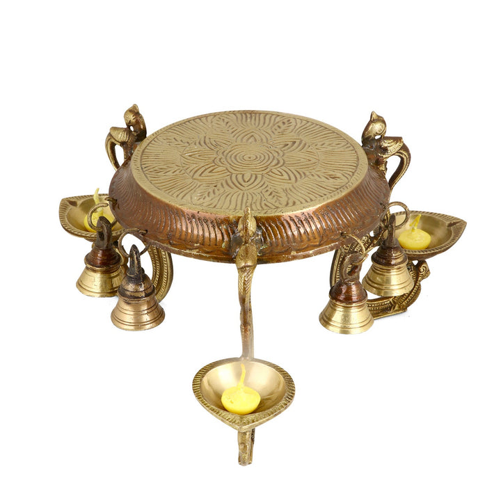• Item Name: Decorative Brass Chowki With Diya And Bell