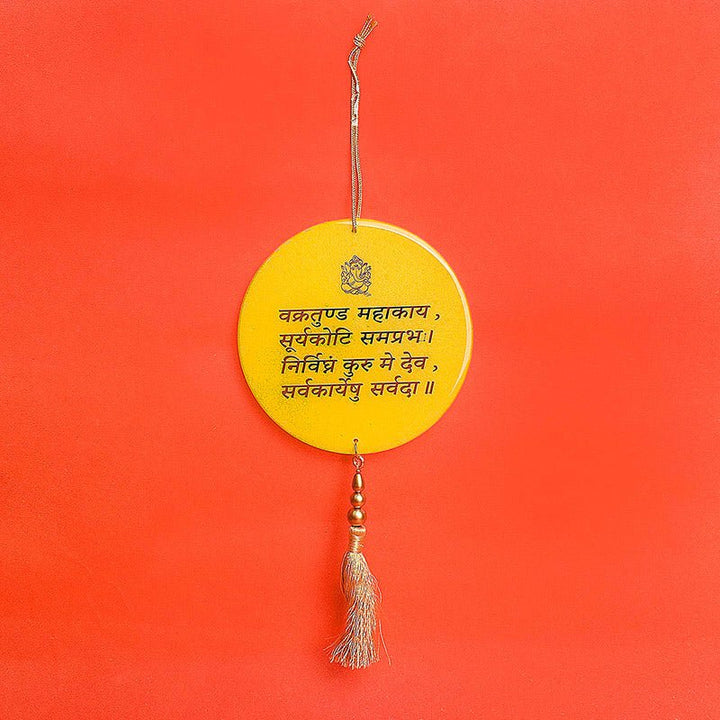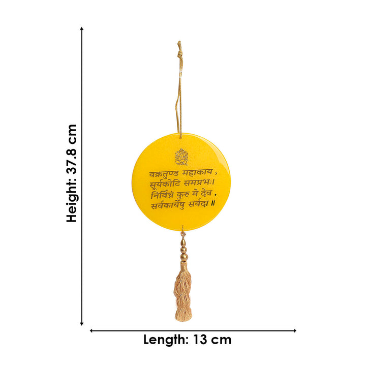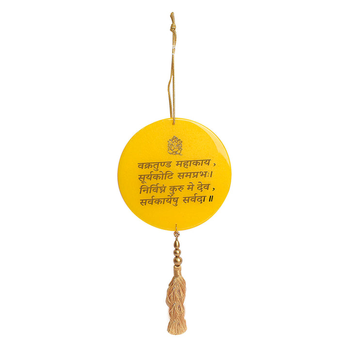 Decorative Epoxy/Resin Ganesh Mantra Yellow Frame Car/Wall Hanging