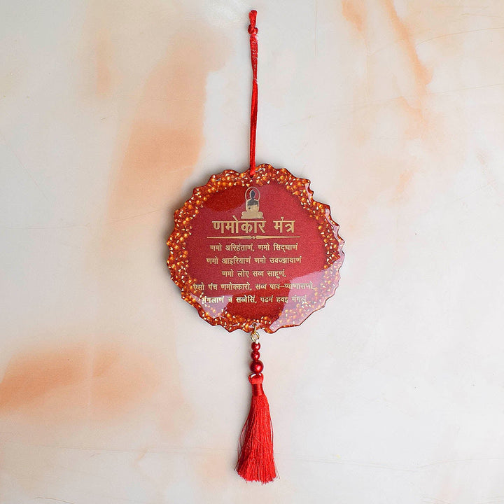 Decorative Epoxy/Resin Gayatri Mantra Red Frame Car/Wall Hanging