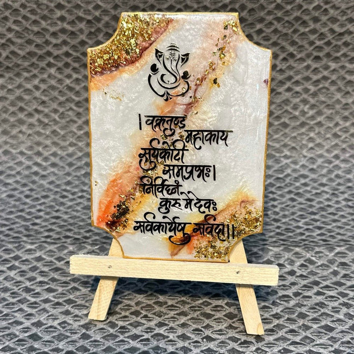 Buy Ganesh Mantra Frame With Stand - Epoxy (White) | Satvikworld.com