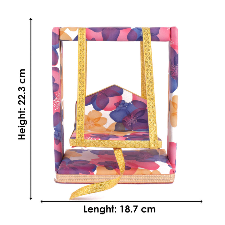 Celebrate the divine presence of Lord Krishna in your home with our Divine Laddu Gopal Jhula with Floral Print. Handcrafted from sturdy wood and adorned with beautifully printed fabric, this jhula makes a serene and charming seat for Laddu Gopal Ji during Janmashtami and daily rituals.