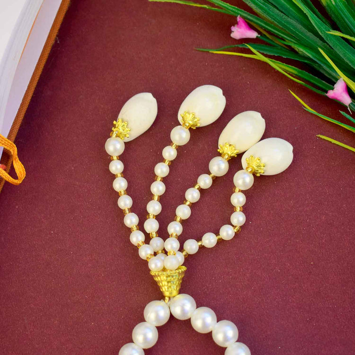 Buy Online | Guruji Swaroop Bracelet – White Pearls with Latkan | Satvikworld.com