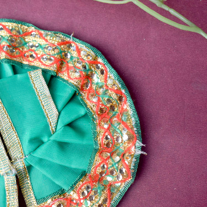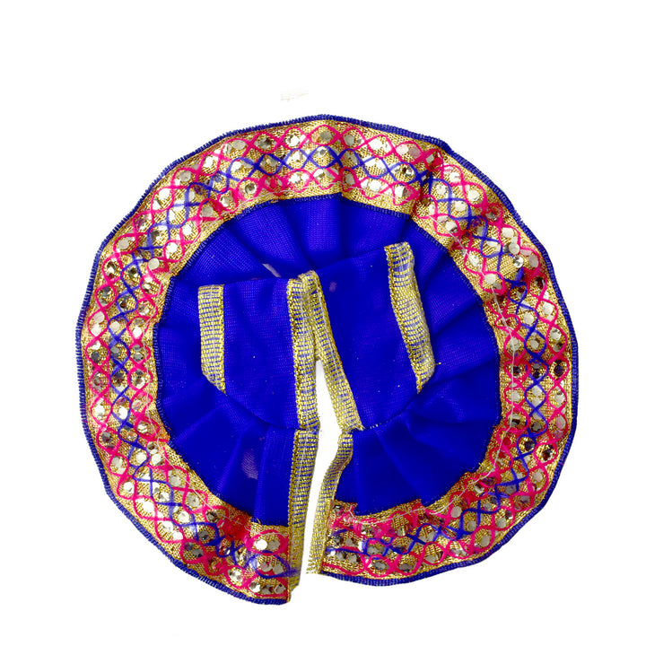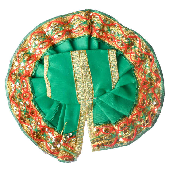 Available in blue, green, pink, orange, yellow, and red, and crafted to fit Laddu Gopal idols in sizes 1 and 2, this exquisite dress effortlessly combines tradition with a festive charm, making your deity’s appearance truly divine.