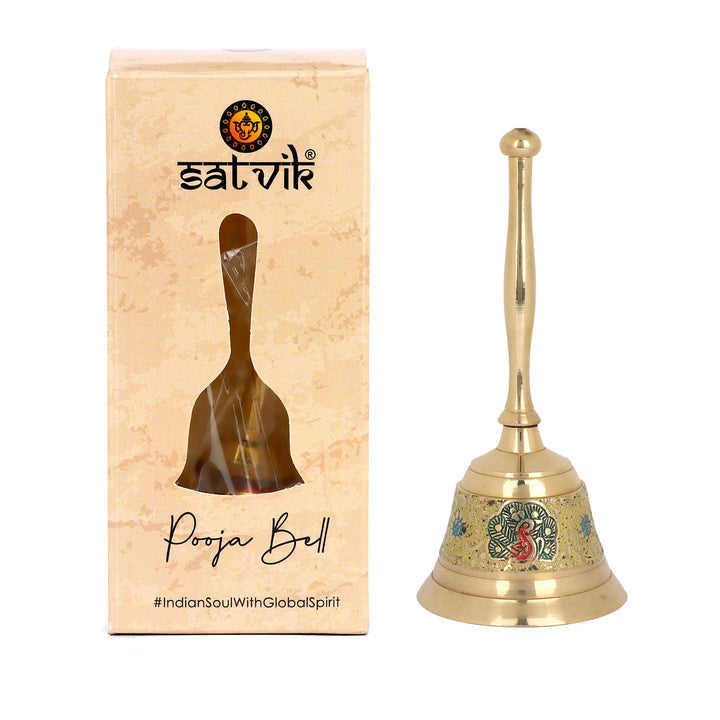 Shop Online Enthralling Brass Hand Held Puja Bell | Satvikworld.com