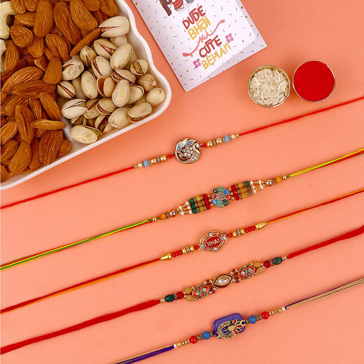 • Rakhi with Dry Fruits: This delightful package includes a beautifully crafted Rakhi along with a selection of premium quality dry fruits.