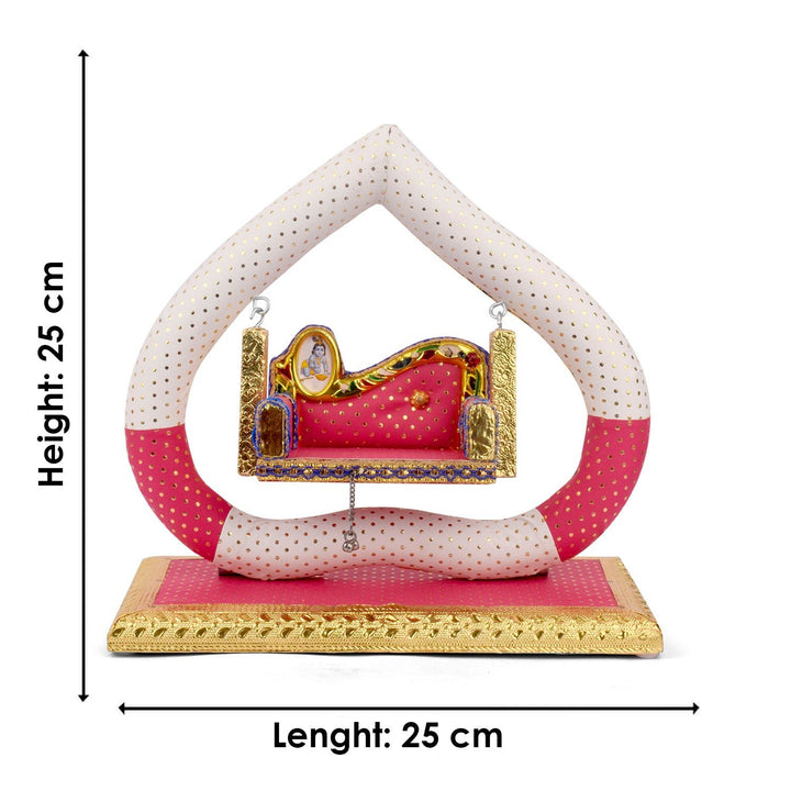 Lovingly handcrafted by skilled artisans from West Bengal and Uttar Pradesh, this jhula is more than just a decorative item—it is a symbol of devotion. Its detailed craftsmanship and balanced structure make it suitable for homes, mandirs, and festival pandals. A perfect blend of tradition and simplicity, it brings spiritual grace to any pooja setup.