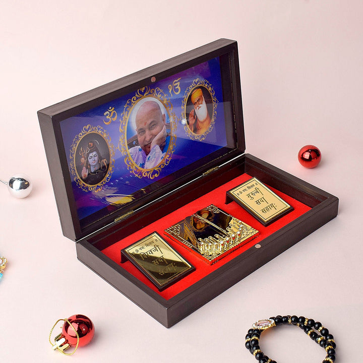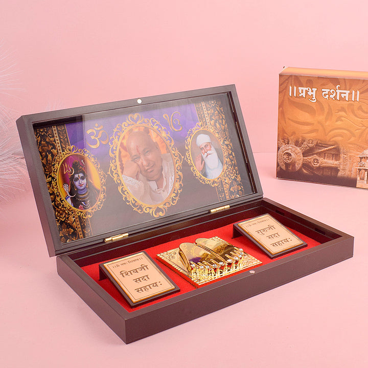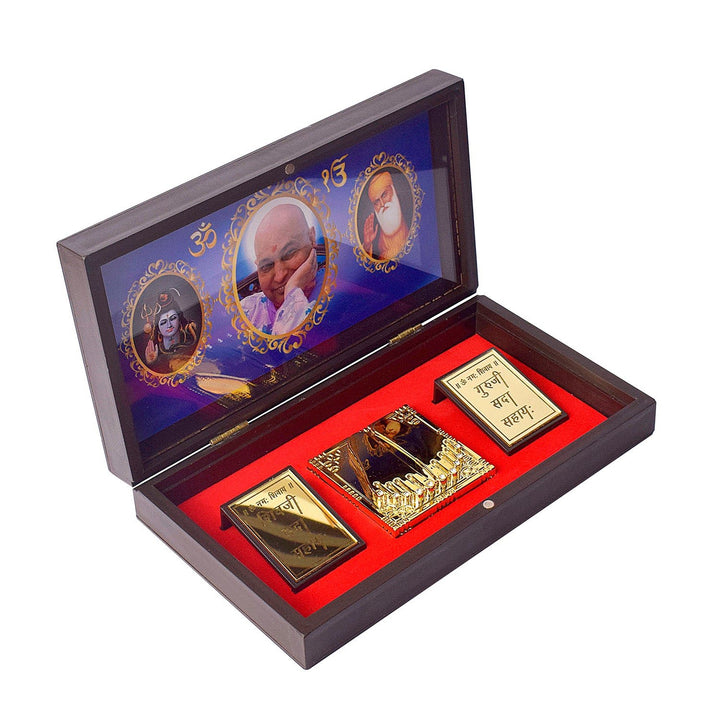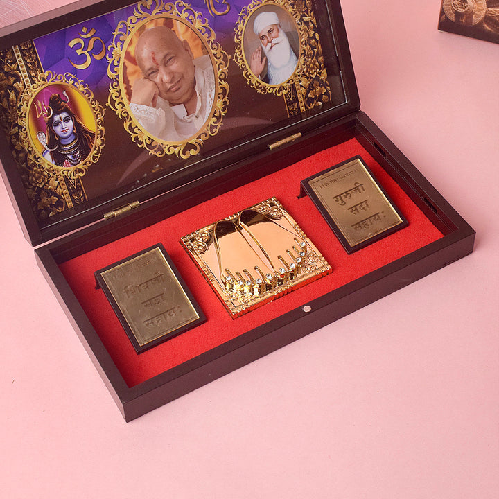 Buy Gold Plated Wooden Guru Ji Sukrana Charan Paduka Prayer Box with Mahadev and Waheguru – Satvikworld.com