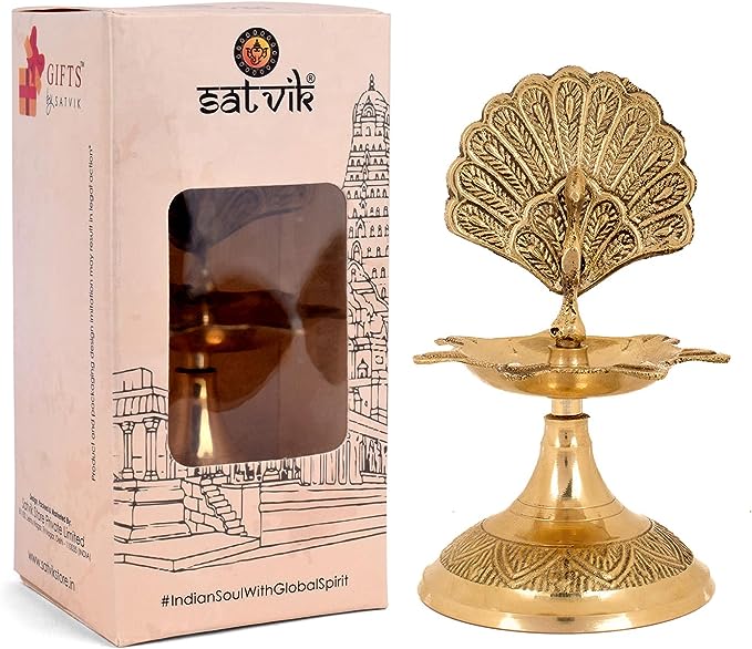 About Product: Introducing the captivating Brass Kerala Peacock Diya, exclusively available at Satvikstore.in. Handcrafted with meticulous attention, this exquisite diya lamp showcases intricate peacock motifs symbolizing beauty and grace. Perfect for inaugurations, events, and Diwali decor, it illuminates spaces with a warm and inviting glow. Embodying divine blessings, it enhances sacred pooja samarohs. This diya lamp's regal charm makes it a striking decor piece for year-round elegance. Elevate your living spaces with the Brass Kerala Peacock Diya from Satvikstore.in, embracing tradition and spirituality. Illuminate your life with this enchanting symbol of artistry, grace, and prosperity, available exclusively for you.