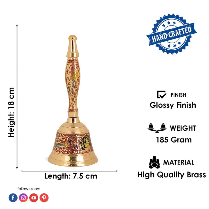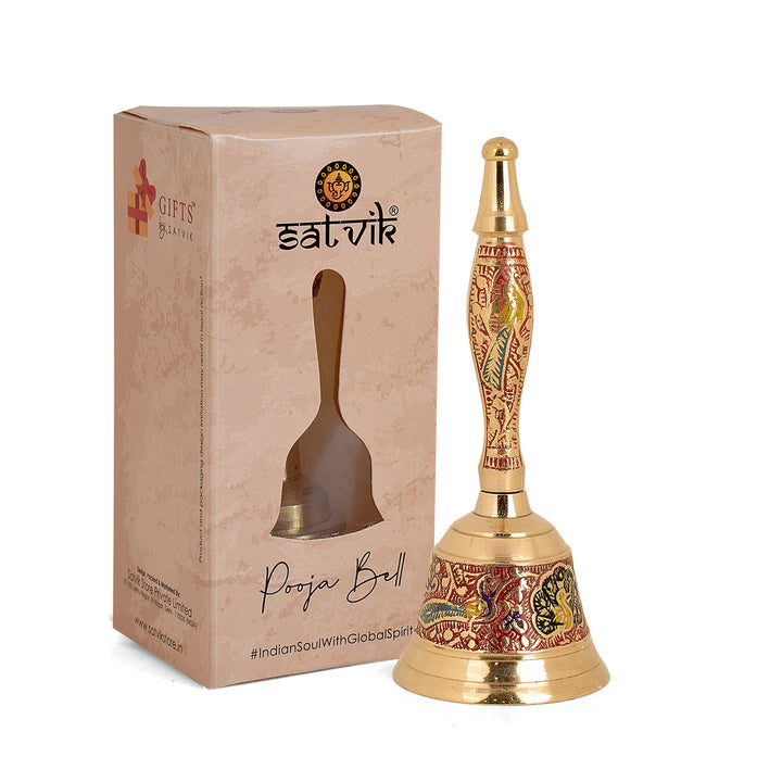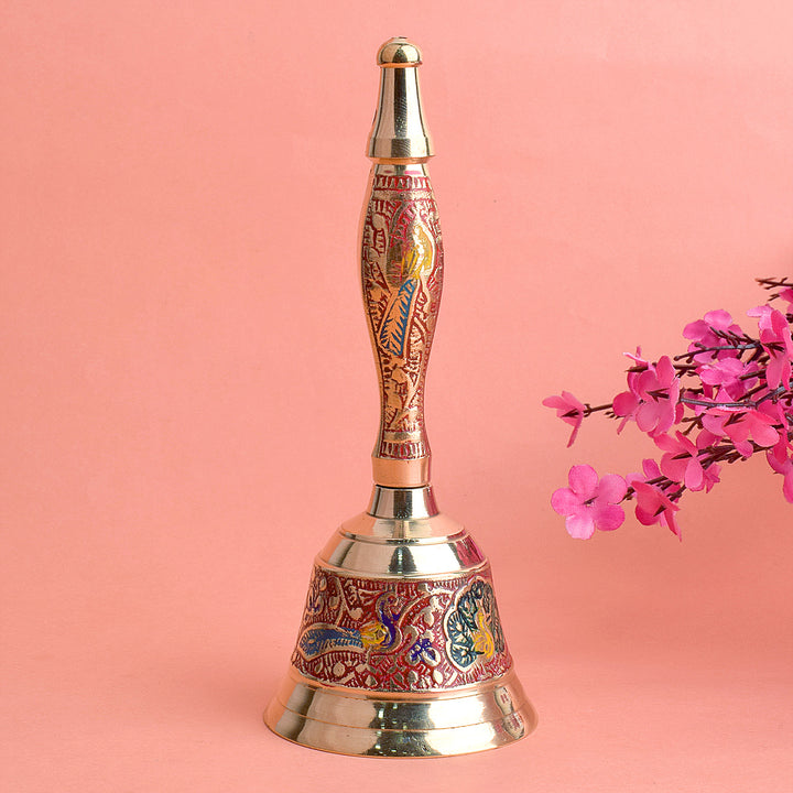 Buy Online Handcrafted Brass Puja Bell (Red) | Satvikworld.com