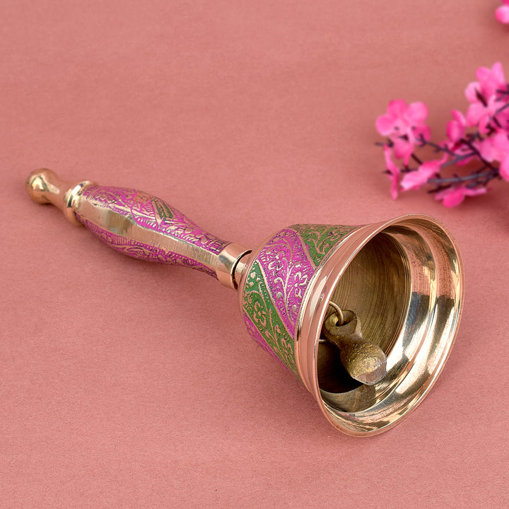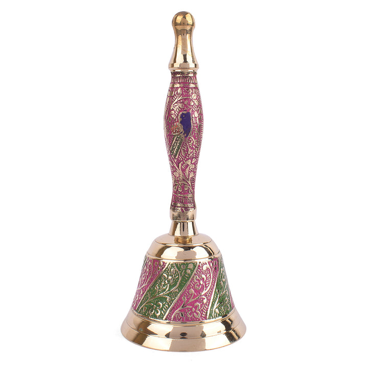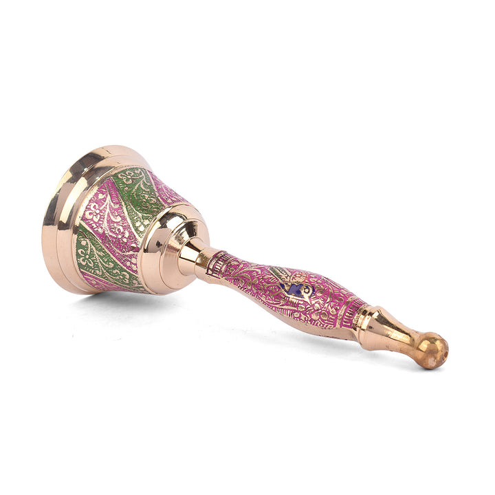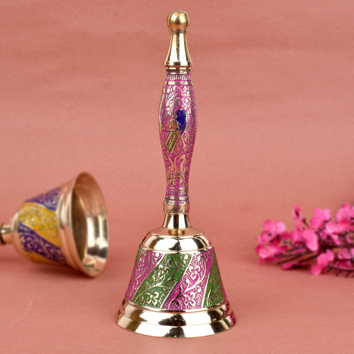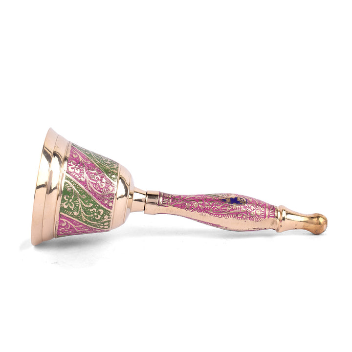 Buy Online Handcrafted Brass Puja Bell (Pink & Green) | Satvikworld.com