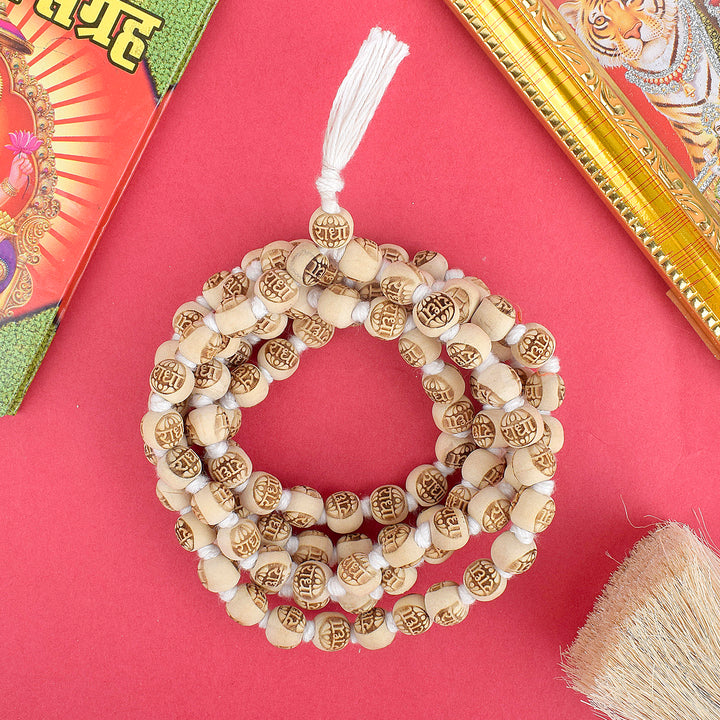 Buy Wodden Jaap Mala with Radha Radha Engraving | Satvikworld.com