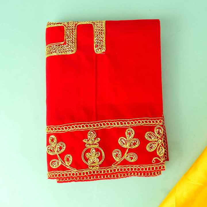 Heavy Design Aasan | Velvet Pooja Mat Set | Designer Puja Aasan | Aasan 15x23 Pack of 4 | Chowki Cover Cloth | Temple Cloth Set | Puja Aasan Velvet | Decorative Mandir Aasan | Red Velvet Asan with Lace | Religious Mat for Temple