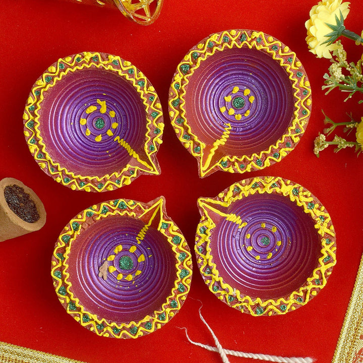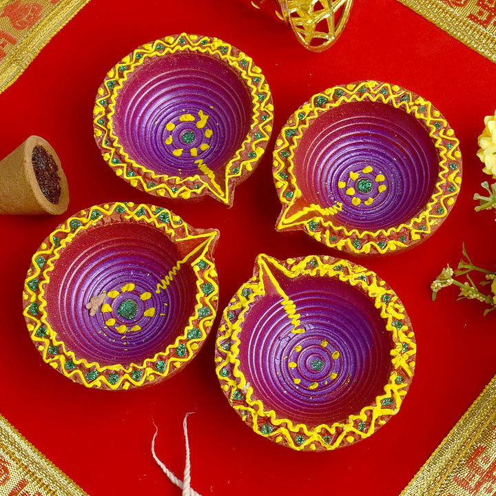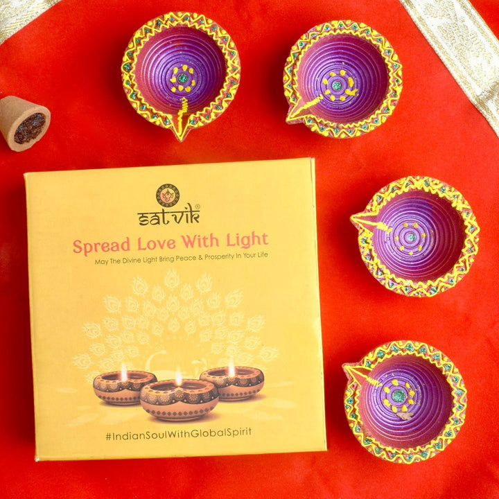 Illuminating Joy Handmade Clay Diyas for Diwali Celebrations Set of 4