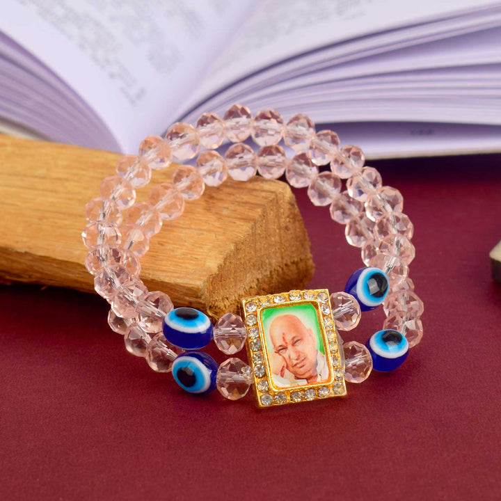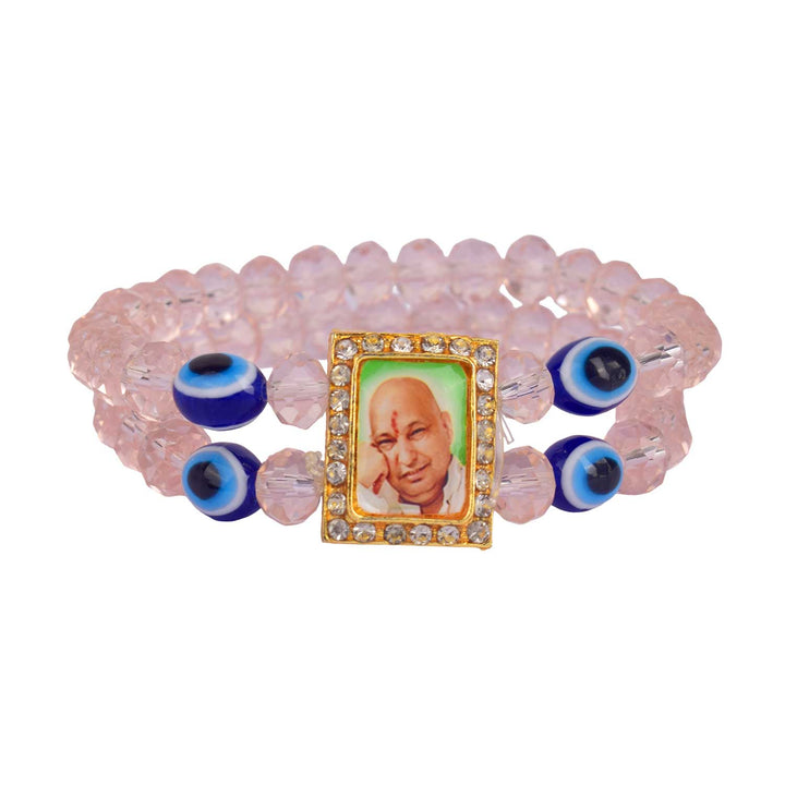 Jai Guruji Swaroop Bracelet – Pink Beads with Evil Eye Charm