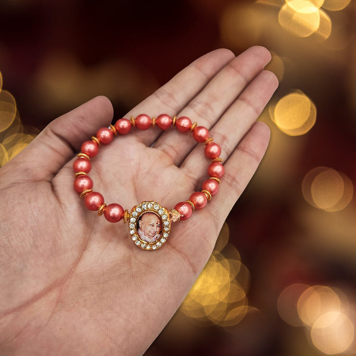 Light Red Beaded Guru Ji Maharaj Handmade Bracelets for Men and Women – Satvikworld.com