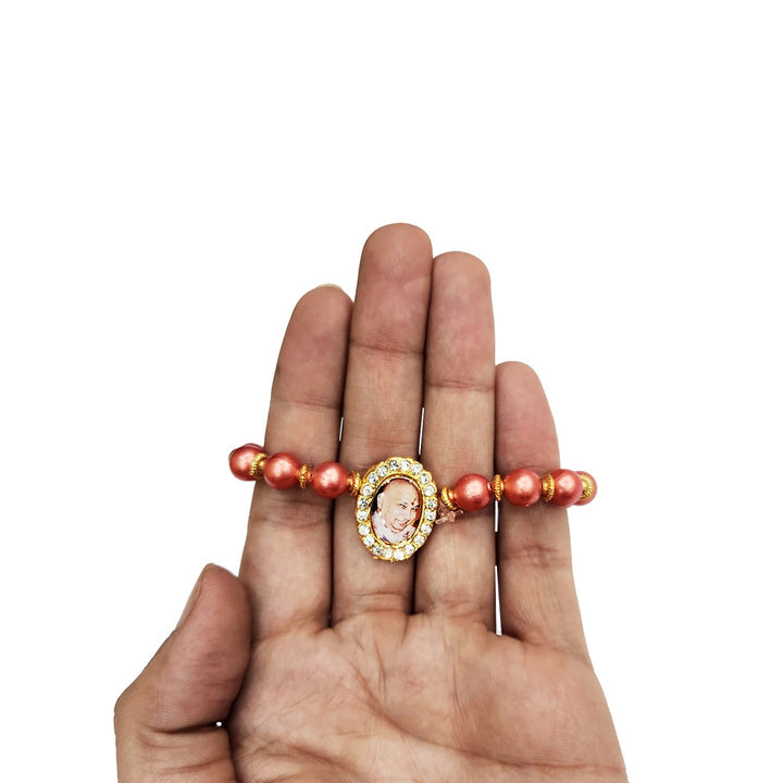 • Item Name: Light Red Beaded Guru Ji Maharaj Handmade Bracelets for Men and Women