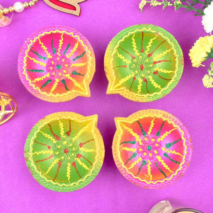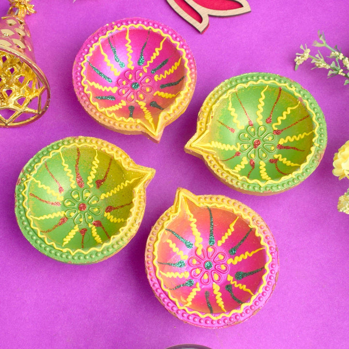 Luminous Celebrations Elegant Clay Diyas Set of 4