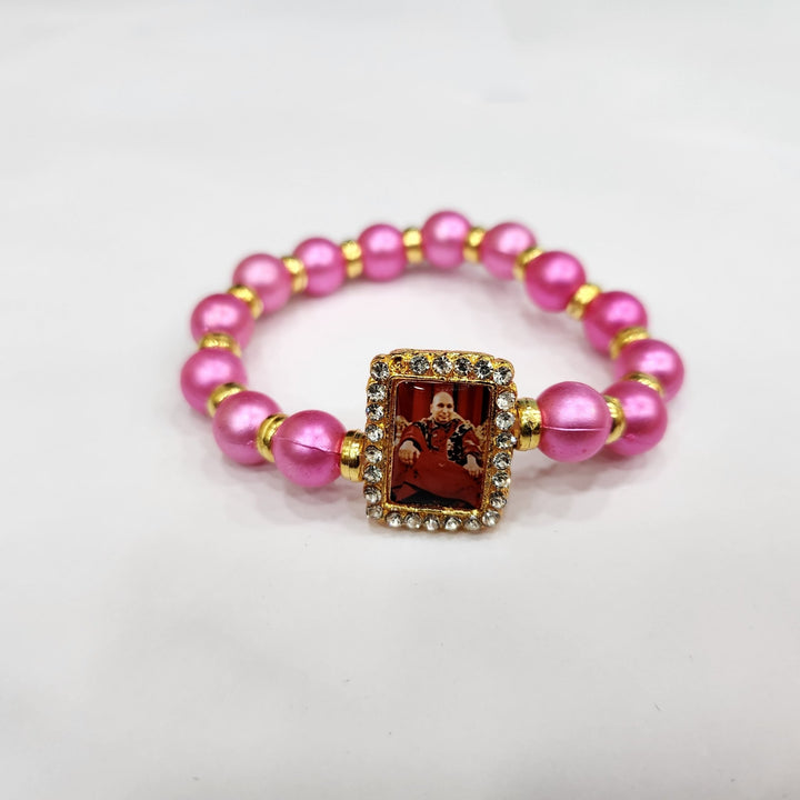 • Item Name: Pink Round Pearl Bracelet with Jai Guruji Swaroop Handmade Bracelets for Men and Women