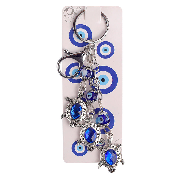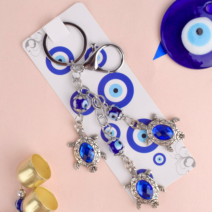 Premium Stainless Steel 3 Tier Turtle Evil Eye Keychain | Buy Online | Satvikworld.com