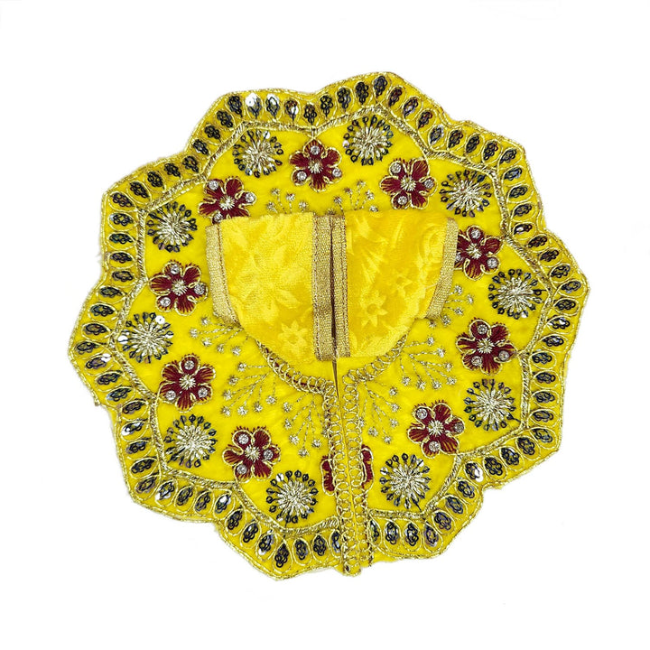 Dress your beloved Laddu Gopal in this radiant yellow Dress No.4, crafted with detailed embroidery and vibrant design to celebrate divine charm. Perfect for Janmashtami, daily pooja, and festive occasions, this soft and comfortable outfit brings warmth and joy to your deity’s attire. Designed to enhance the spiritual atmosphere in your temple with elegance and devotion.