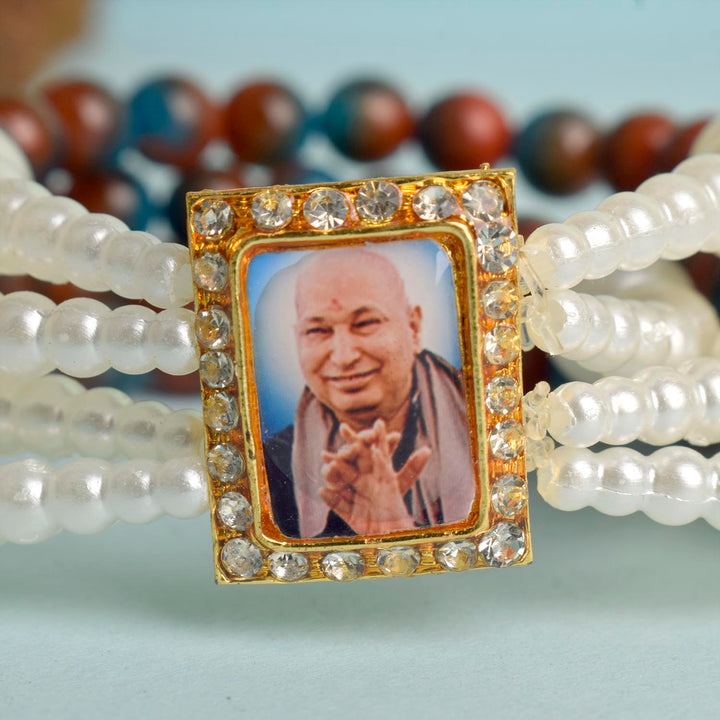 Buy Online | Red & Blue Marble White Pearl Guruji Swaroop Bracelet | satvikworld.com – Satvikworld.com