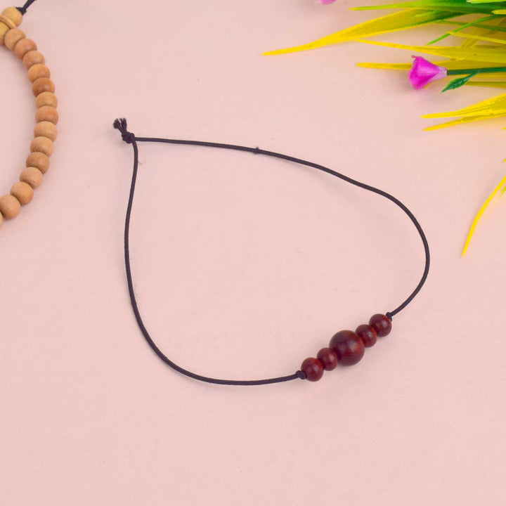 This sacred Red Chandan Bajuband features three beads—a powerful 8mm center bead, flanked by 6mm beads on both sides. Crafted from natural red sandalwood, it is worn on the upper arm to attract positive energy, grounding, and divine strength.