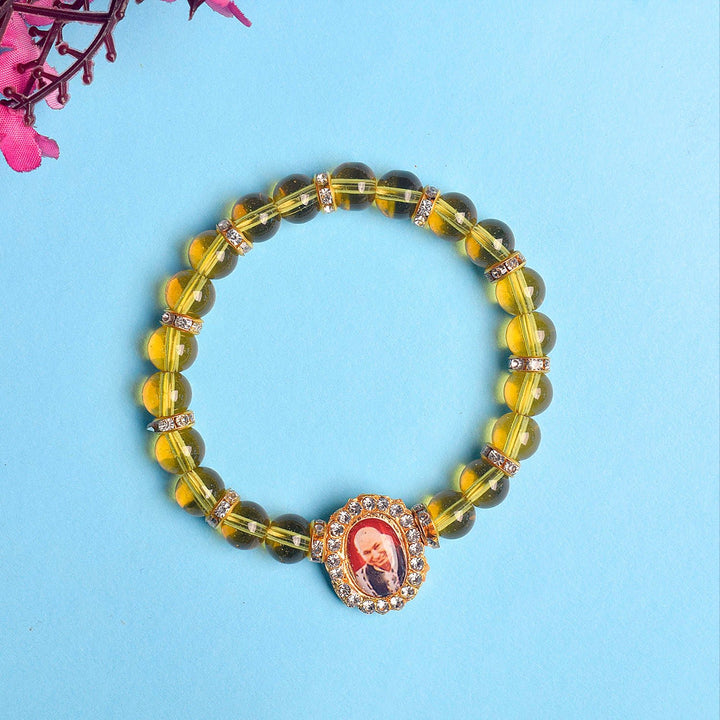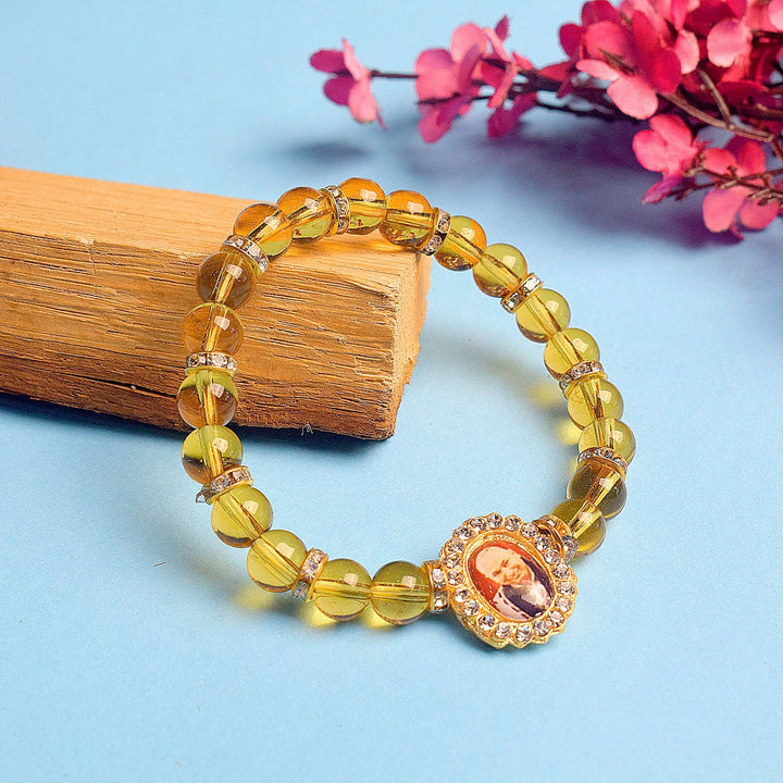 • Item Name: Round Pearl Bracelet with Jai Guruji Swaroop Handmade Bracelets for Men and Women.