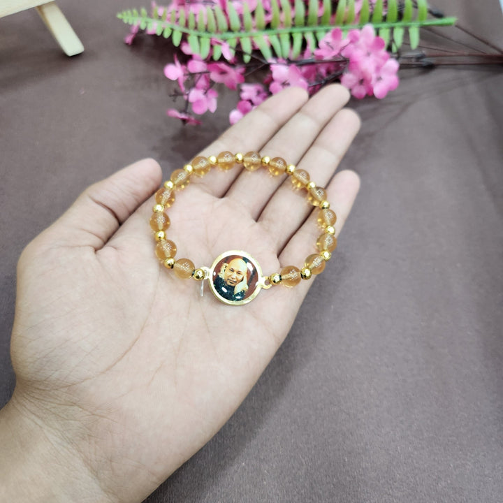 • Item Name: Round Pearl Bracelet with Jai Guruji Swaroop Handmade Bracelets for Men and Women.
