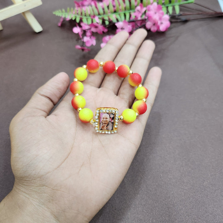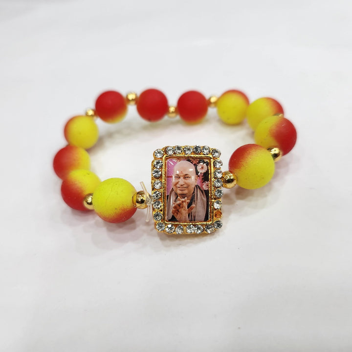 About Product: Guruji Stone Bracelets removes negative energy and and uplift the spiritual, mental and physical Health. Easy to wear, Skin Friendly. You can Gift this Beautiful Beads Bracelets to your family, friends, relative, neighbor on religious occasion like : pooja, kirtan, return gift idea, housewarming, home inauguration, Puja and other. Very beautiful bracelet made of artificial ceramic stones with smooth round finish, each bracelet is handpicked for quality check, Jai Guruji is Photo also there in the bracelet. This is Red and Black matches trend with tradition. Proudly Made in India for Our Devotees.