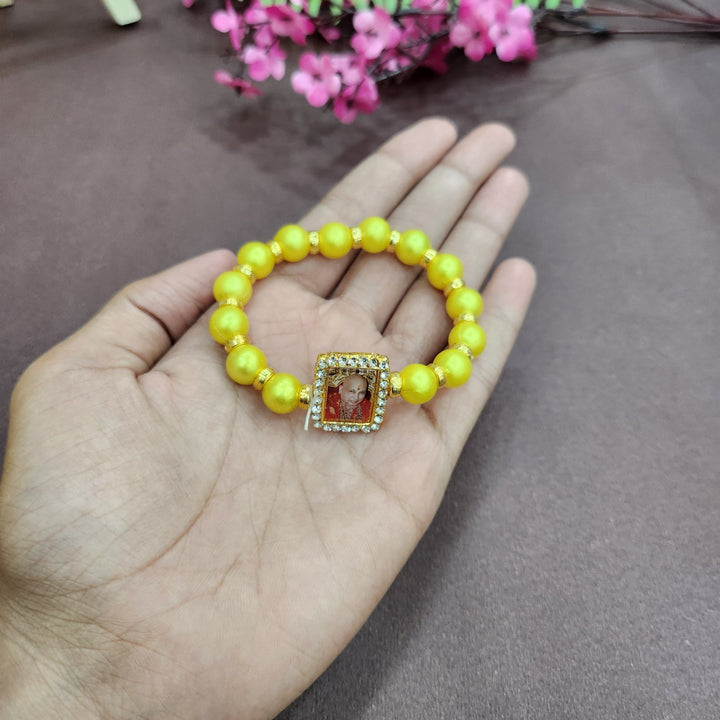 • Item Name: Round Pearl Bracelet with Jai Guruji Swaroop Handmade Bracelets for Men and Women