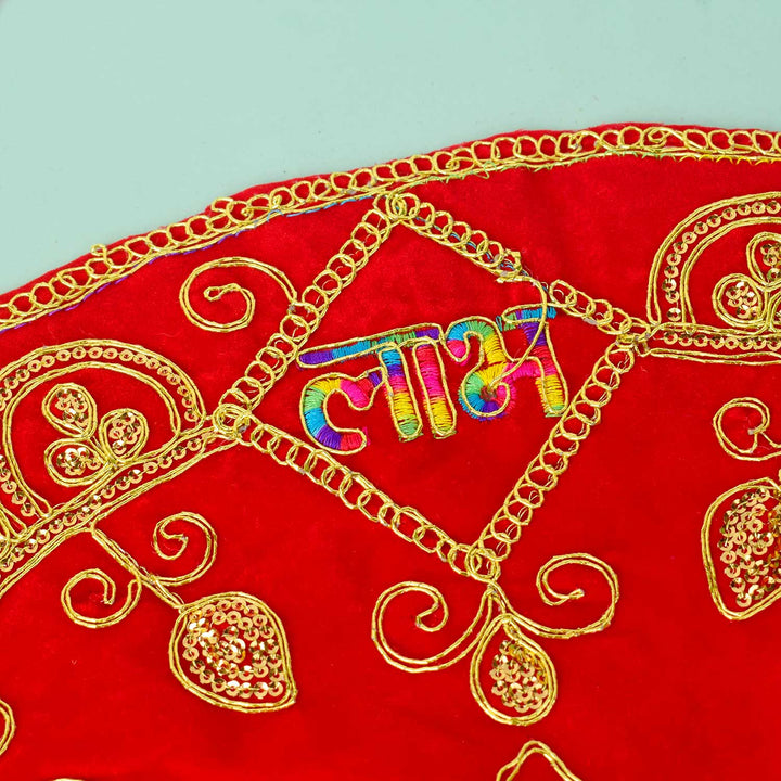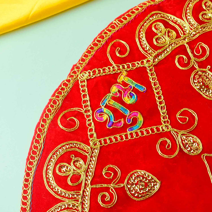 Round Shape Asan | Velvet Pooja Cloth | Medium Round Pooja Mat | Asan for Deity | Round Chowki Cover | Red Pooja Mat | Velvet Aasan for Puja | Round Mat for Temple | Decorative Puja Aasan | Mandir Cloth Round