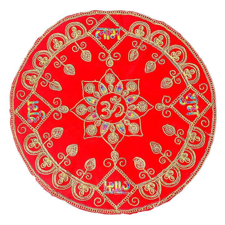 Round Shape Asan | Velvet Pooja Cloth | Large Round Pooja Mat | Asan for Deity | Round Chowki Cover | Red Pooja Mat | Velvet Aasan for Puja | Round Mat for Temple | Decorative Puja Aasan | Mandir Cloth Round
