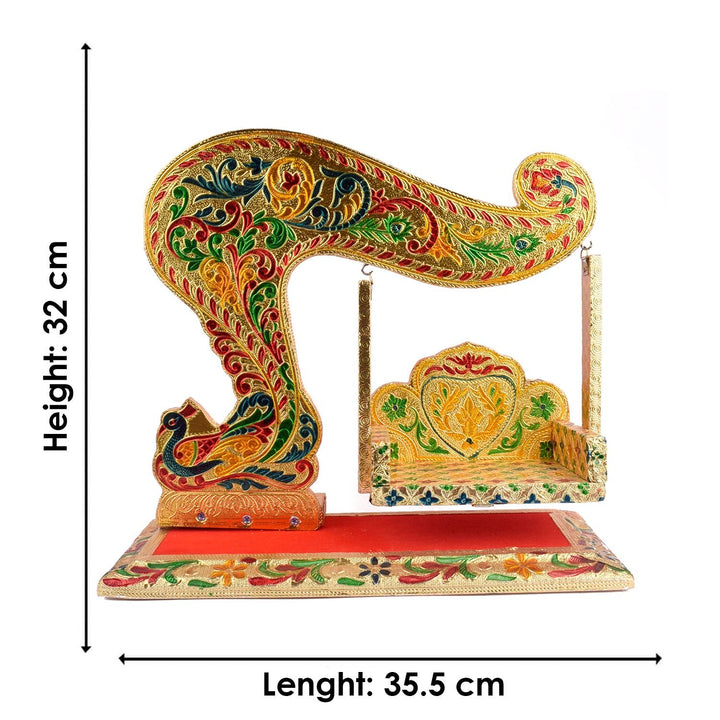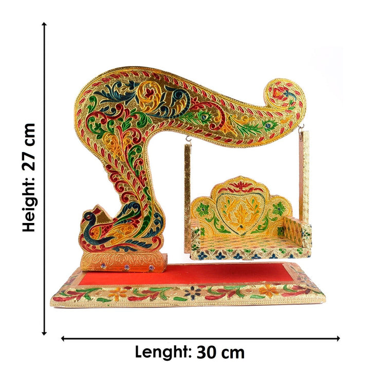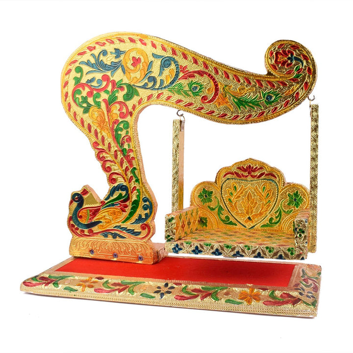 Expertly handcrafted by artisans from West Bengal and Uttar Pradesh, this jhula adds a majestic touch to any home mandir or festive setup. Especially ideal for Janmashtami, pooja decor, or gifting, this piece transforms any corner into a sacred darbar of devotion.