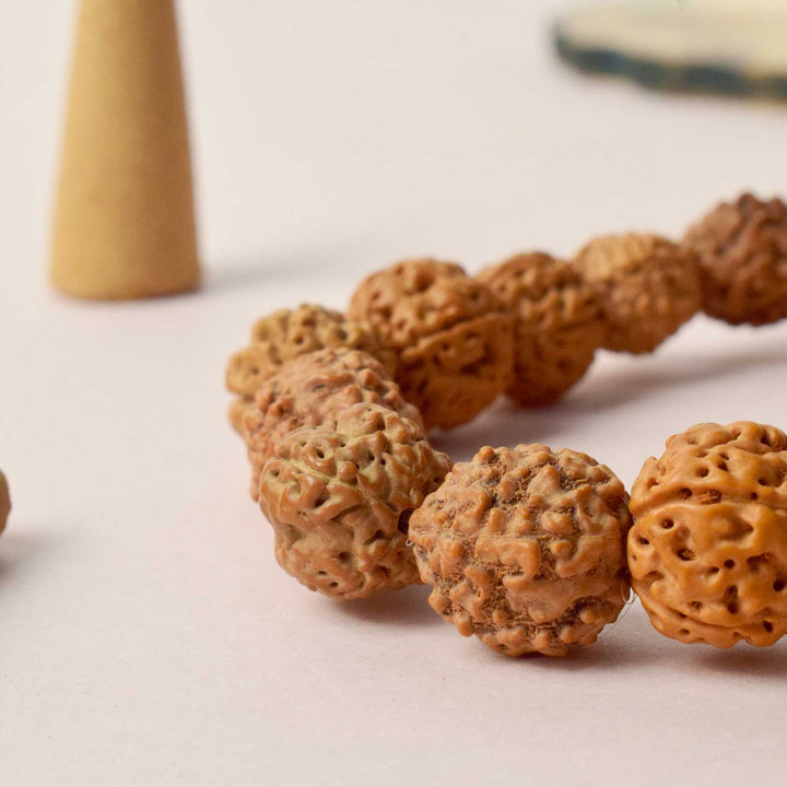 Worn on the wrist, this bracelet serves as a constant source of grounding, peace, and spiritual focus. Each bead in the bracelet is believed to be blessed by Lord Shiva and acts as a spiritual armor, protecting the wearer from negative energies and emotional turbulence.
