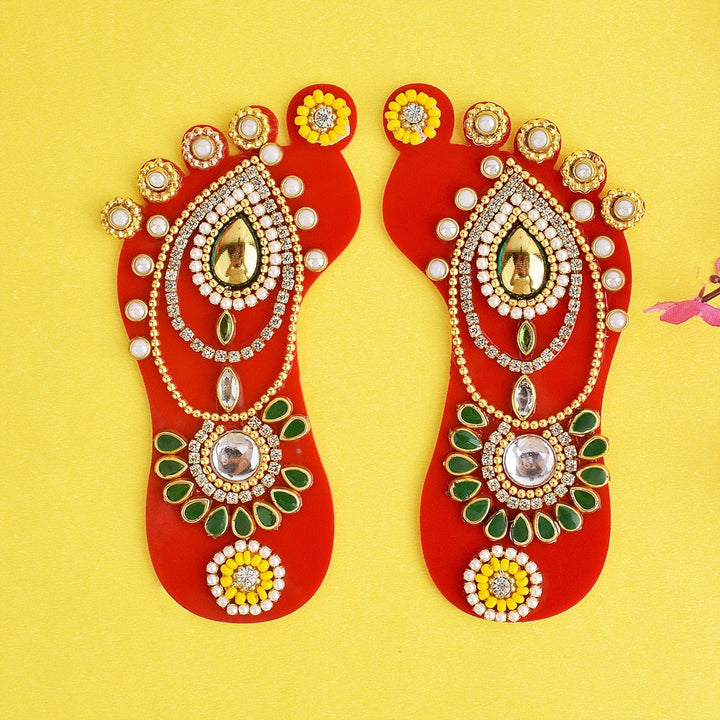 • Product Details: Material: Hight Quality Material, Dimensions:  Charan: Height: 10cm, Length: 10cm, Swastik: Height: 6.3cm, Length: 6.3cm, Weight: 100gram, Finish Type: Glossy.
