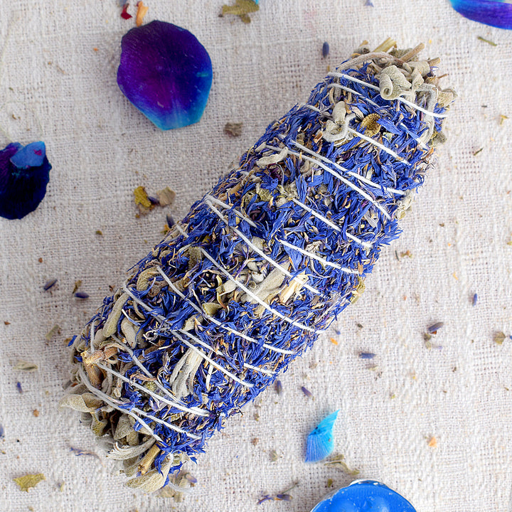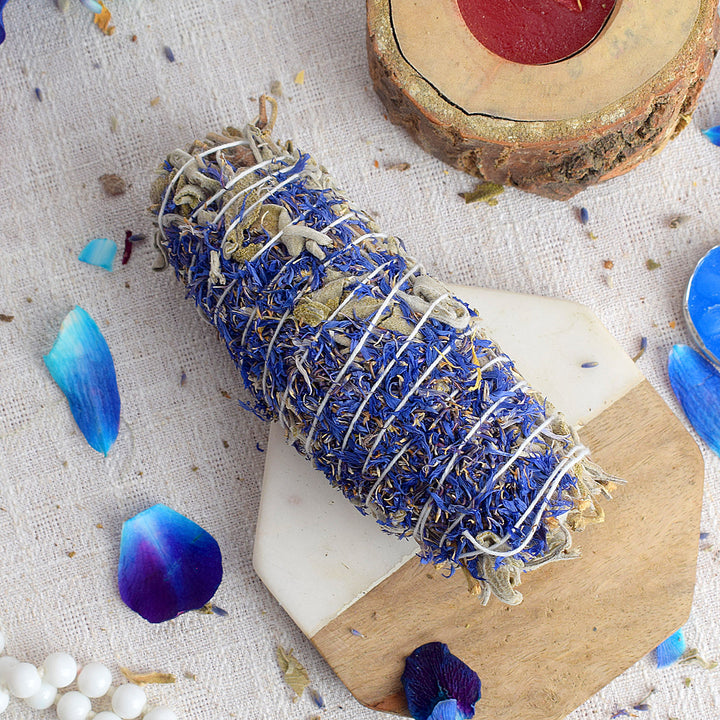 • About Product: "Sage with Blue Corn Smudge Wand" – a unique blend of traditional smudging rituals and the vibrant energy of blue corn. This handcrafted wand combines the purifying power of sage with the symbolic abundance and protection of blue corn. Experience transformative cleansing and spiritual connection with this visually captivating smudging tool. Elevate your spiritual practice with our Sage with Blue Corn Smudge Wand.