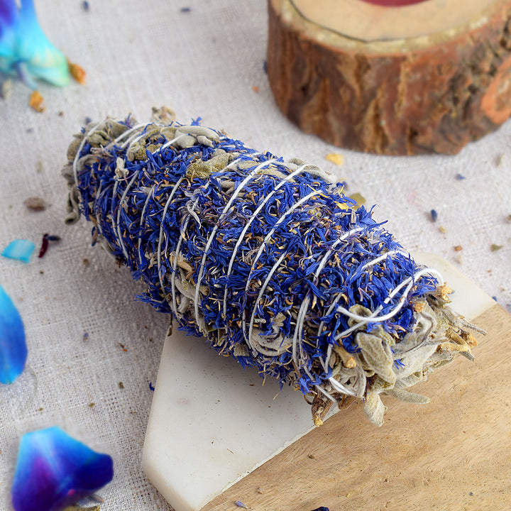 SAGE WITH BLUE CORN SMUDGE WAND – Satvikworld.com