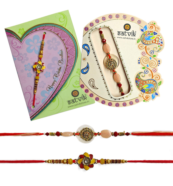 Satvik Floral And 2 Beads Rakhi Pack Of 2 – Satvikworld.com