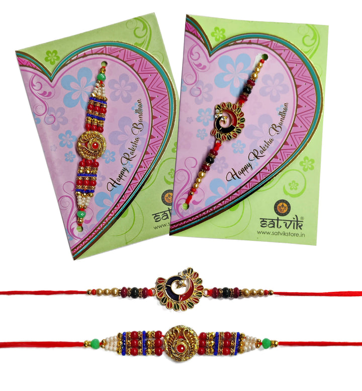 Satvik Peacock and Multibeads Rakhi Pack of 2