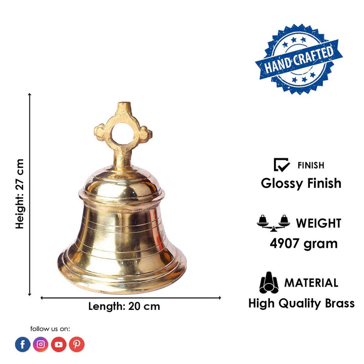 10.6 inch brass temple bell | Handcrafted brass ghanta | Large brass pooja bell | Temple ghanta for mandir | Heavy brass pooja bell | Brass bell for temple rituals | Traditional mandir ghanta | Pure brass temple bell | Handcrafted mandir ghanti | Premium quality brass pooja bell | Big brass bell for temple use | Brass ghanta for daily puja |