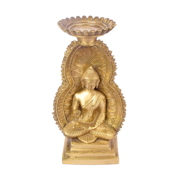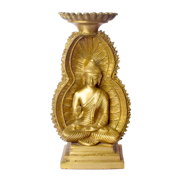 Buy 11.4 Inch Sculpted Brass Buddha Candle Stand | God Statue For Prayer | God Statue Online | Satvik – Satvikworld.com
