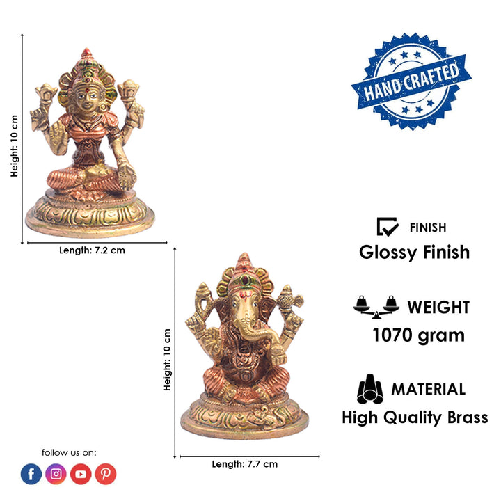 • Item Name: 3.9 Inch Elegant Brass Lakshmi Ganesh Idol