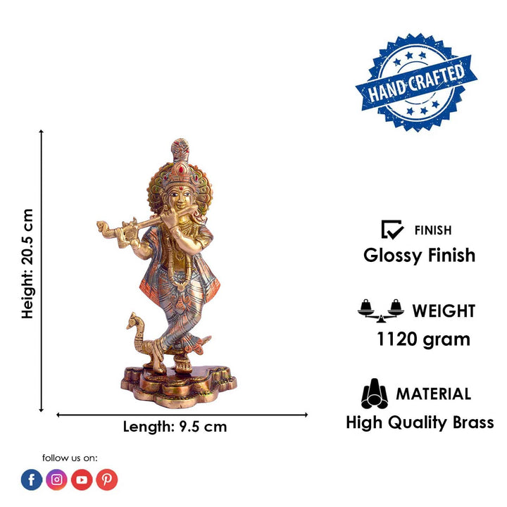 • Item Name: 8.1 Inch Lord Krishna Brass Murti