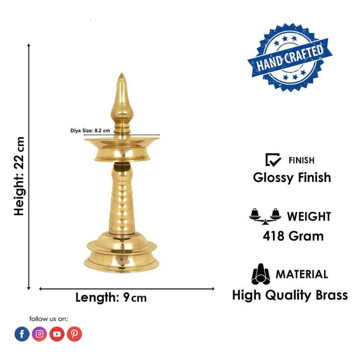 9 Inch Small Brass Kerala Diya. AKP NilaVilakku Deepam – Satvikworld.com