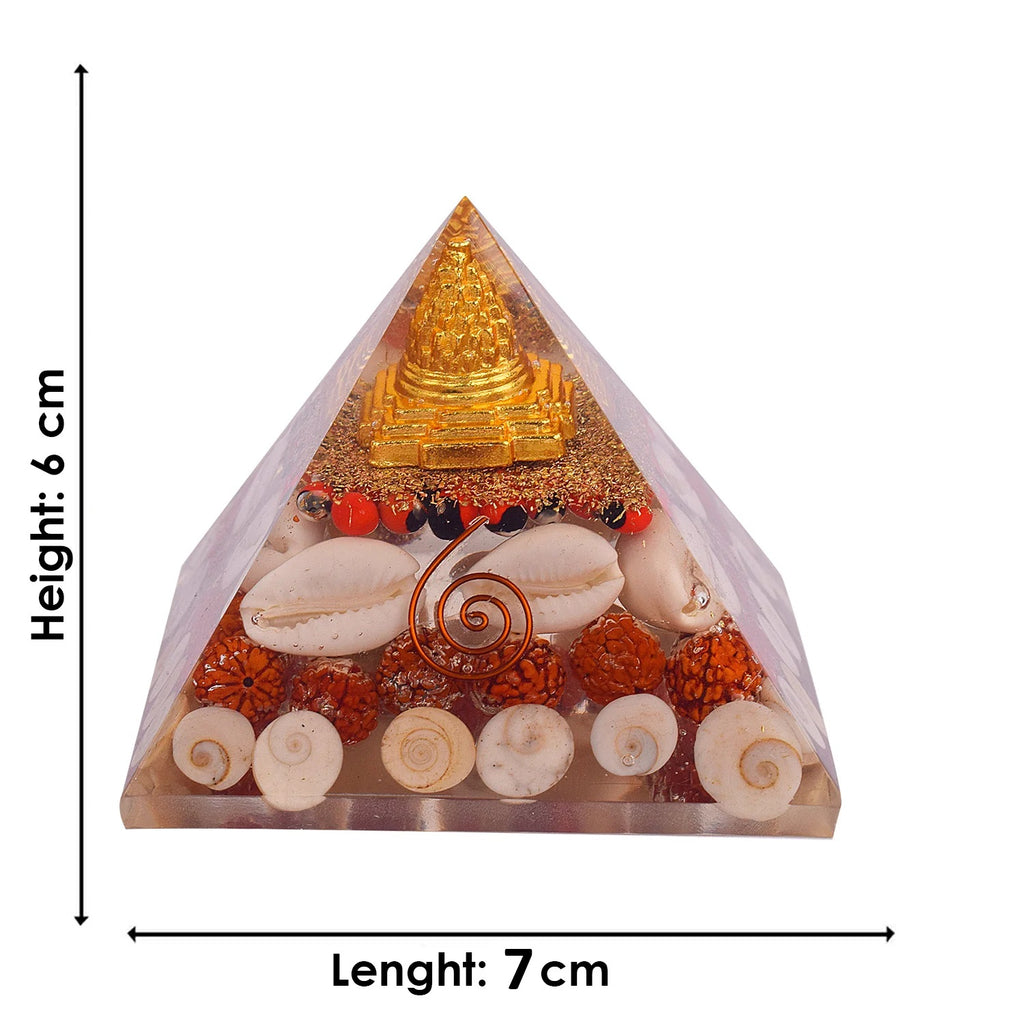 • Orgone Gomti Chakra Pyramid: Fikup's natural Orgone Pyramid, featuring Gomti Chakra and Shree Yantra for powerful energy alignment.