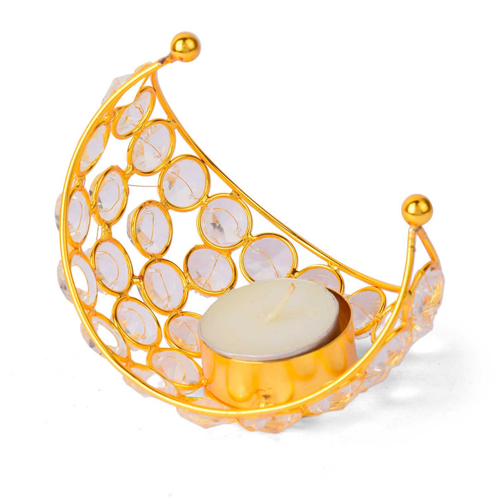 • Item Name Moon Crystal Diya for Home & Temple Decoration