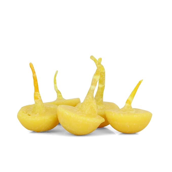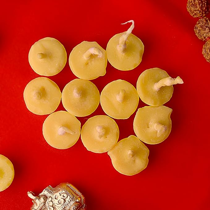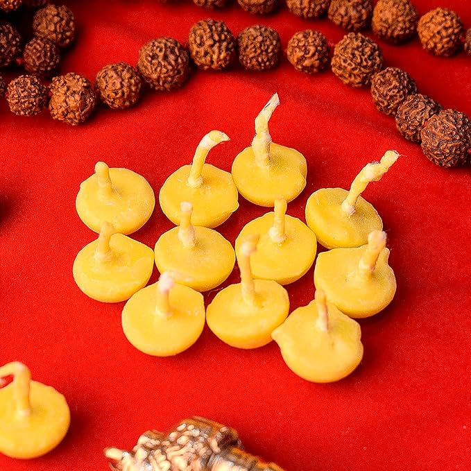 • Material: Ready to Use the Ghee wicks Batti are made from Cotton Flower Batti with Ghee material.
