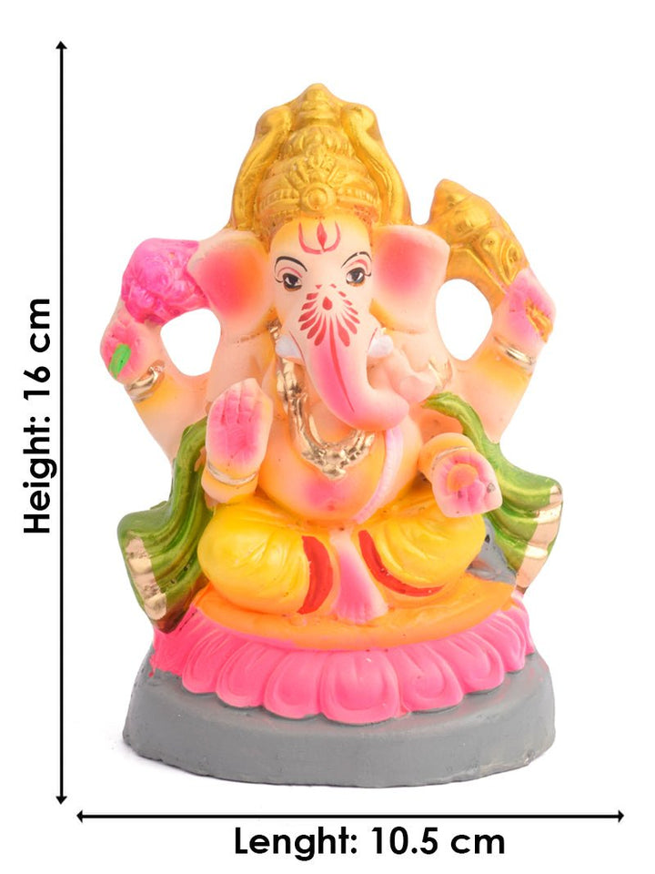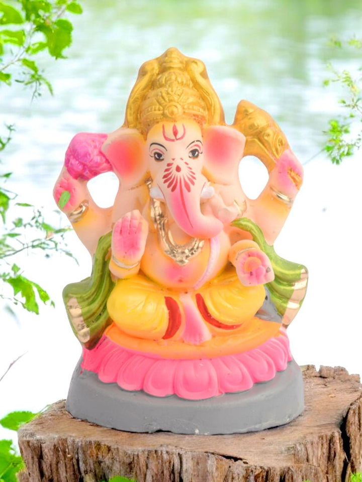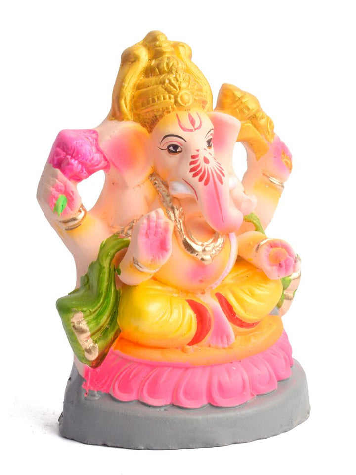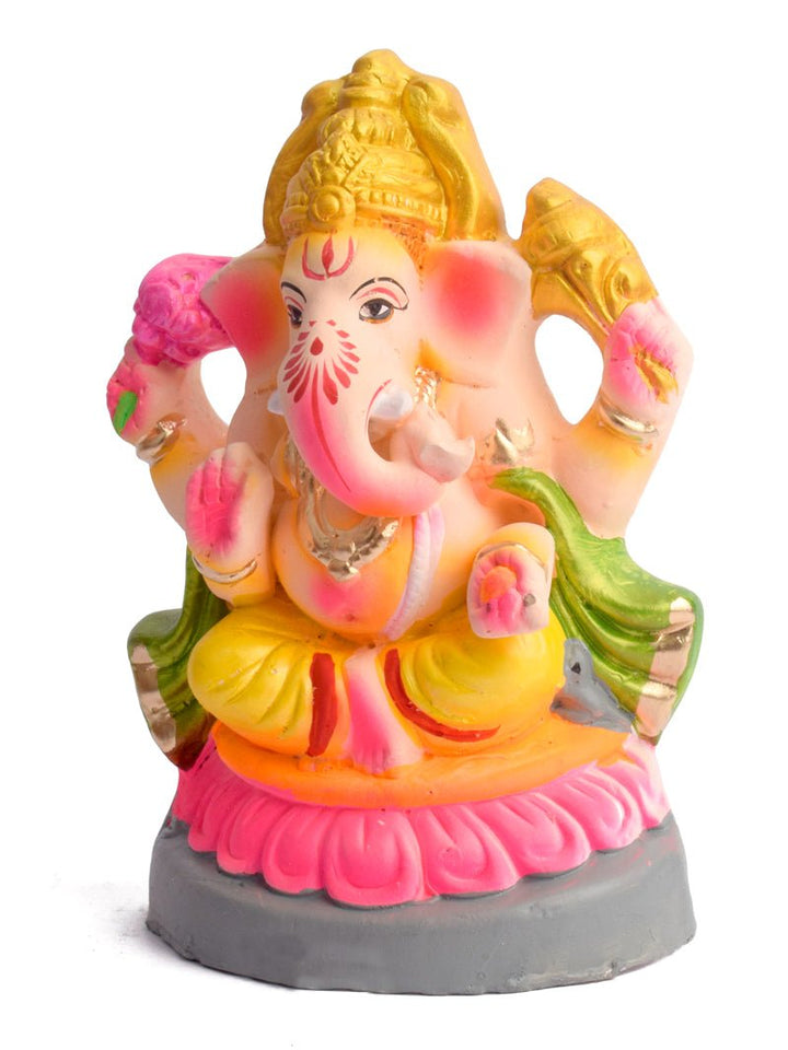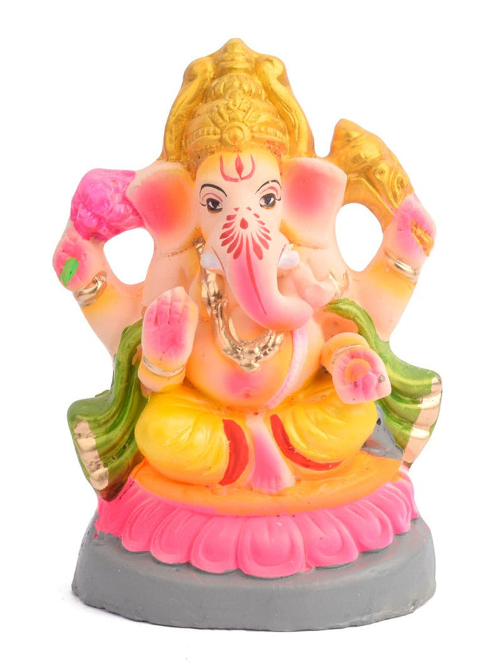 Eco Friendly Ganesha statues are made of 100% biodegradable and eco-friendly material by using Shadu Mati Clay Mitti, which dissolves easily in water. The colours used are also natural, and they decompose and dissolve in water easily. Although they have been made all across India, West Bengal and Maharashtra often employ skilled artisans to make them.